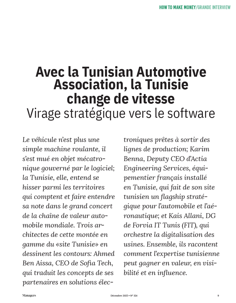 La Tunisian Automotive Association à l’honneur dans le numéro spécial Managers N°324